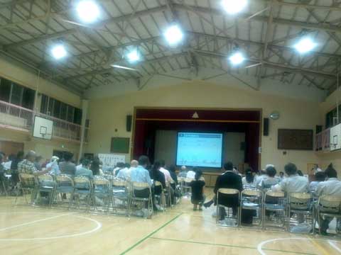 会場からは遺跡の処理、古いままの計画で工事に入れるのか、などの質問があり、それぞれ教育委員会と協議する、計画は実行する、と第六建設事務所から答えがありました。