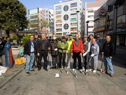 晴天の8時30分、赤羽駅東口の広場に集合。NPOのリーダー、荻野さんのガム取り機の説明があって1時間、9時30分までの作業開始。ガム取り機はガムを溶かす液体を出して先端のヘラでかき取ります。腰を曲げずに作業できます。 思ったより簡単です。取った黒いガムは紙コップに集めます。作業をしつつ、ガム取り以外の話をしたりして愉快にはかどりました。 新宿区、豊島区では区役所も協力して日時を決めて運動しているようです。 タバコの次はガム。街をきれいにして、自分の口から吐き捨てるガムの行儀の悪さを自覚することが大切です。 ある経験者はこんなことを言いました。「紙コップを持っていたら、タバコをその中に捨てられたこともある。」というのです。 また「何をやっているの、そうかガム取りか、いいことだね。ごくろうさん。」という人も。 ガムを取る前と後の路は見違えるようでした。その後で近くのコーヒーショップで反省会。なごやかな午前中でした。